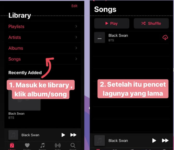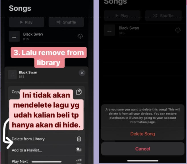 Penghapusan lagu yang sudah kalian beli dari library kalian dulu agar streaming kalian nanti bisa terhitung.