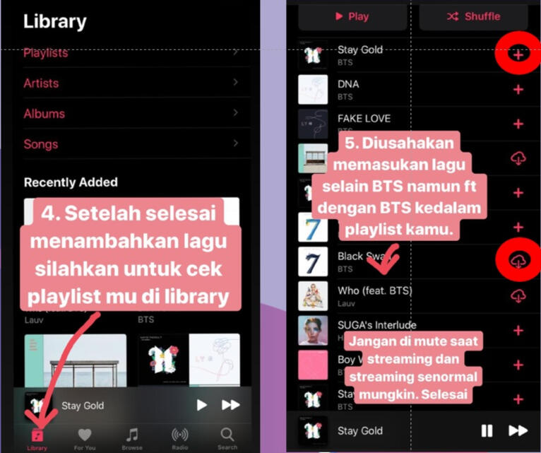 Kalau bisa kalian melakukan streaming dengan membuat playlist (campuran lagu BTS dengan yang feat sama BTS)