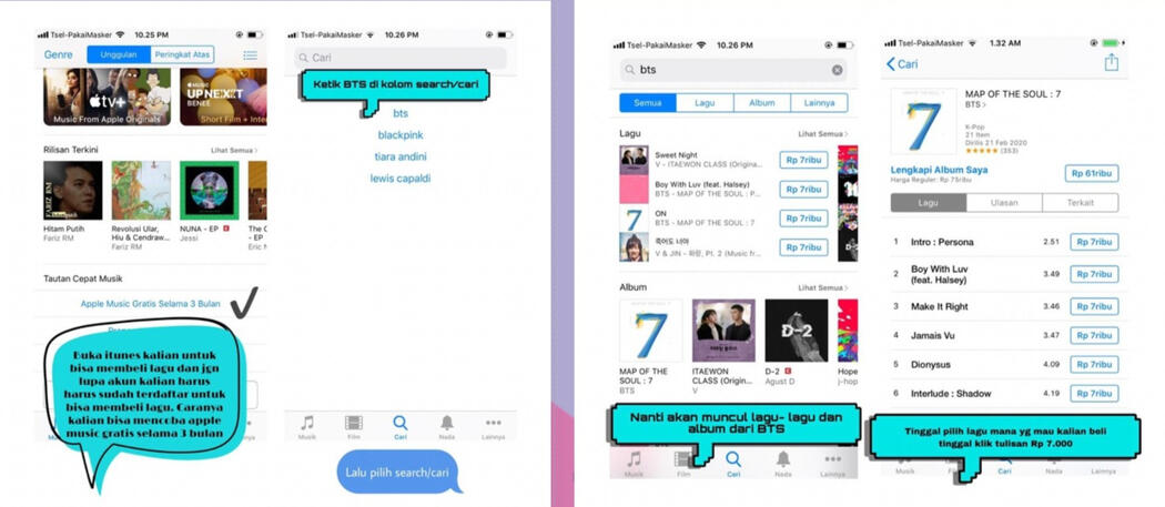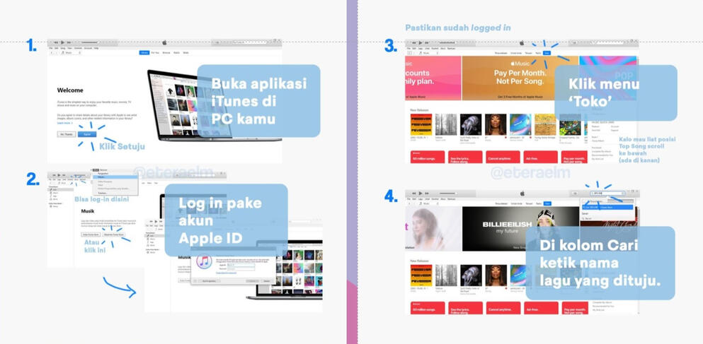Jadi iTunes — merupakan platform pembelian lagu maupun film yang tidak digunakan untuk streaming. Tersedia di Ios dan PC minimal > windows 7.
